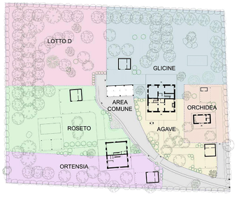 Ogni residenza comprende un ampio garage e due posti auto coperti, offrendo comodità e sicurezza per i vostri veicoli.